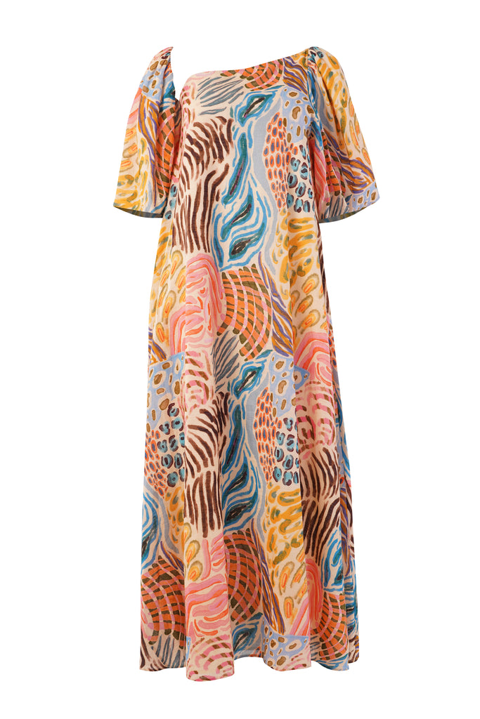 Savanna Strokes Asymmetric Maxi Dress