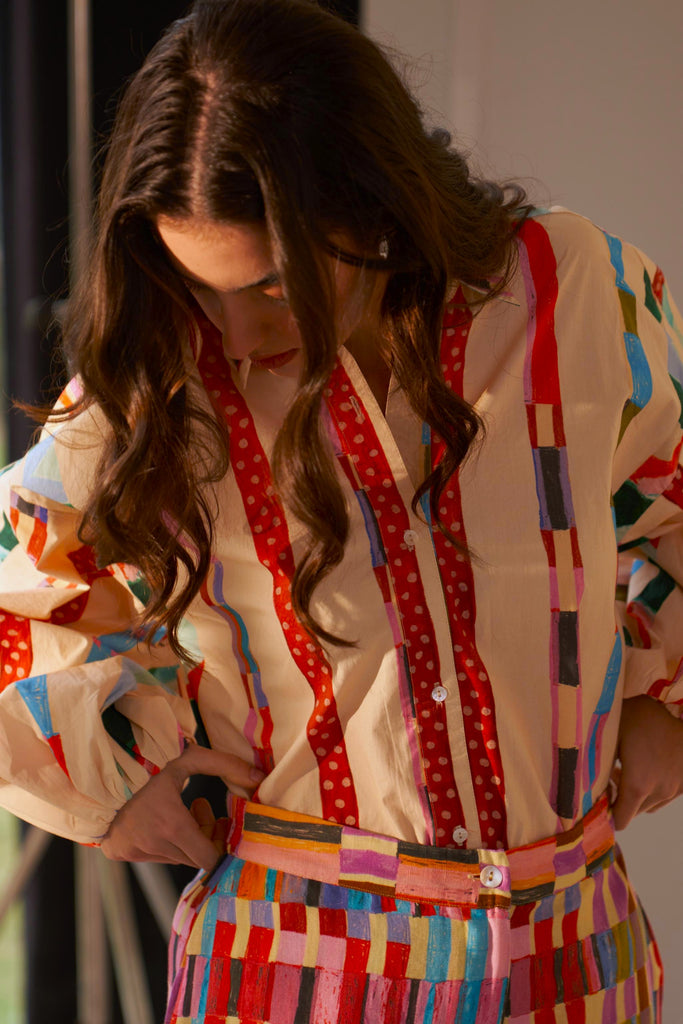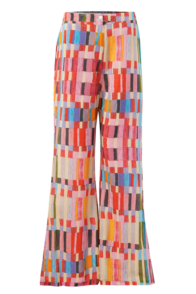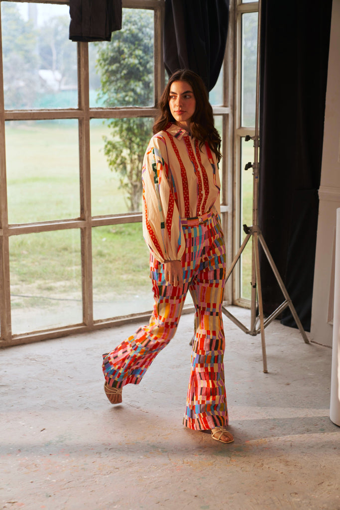 Style them your way—pair with a crisp white shirt for a refined daytime look or wear them as a set with the matching Painter’s Patch Striped Shirt for full head-turning impact. Just add platform heels or easy sandals, and let the pants do the talking.