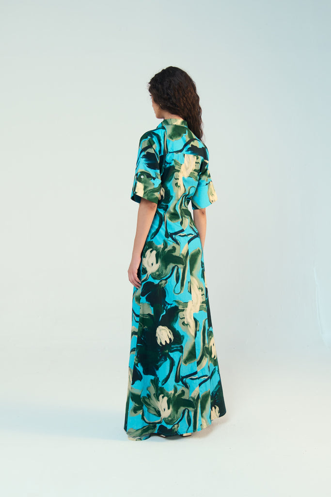 Midnight Magnolia Maxi Shirt Dress