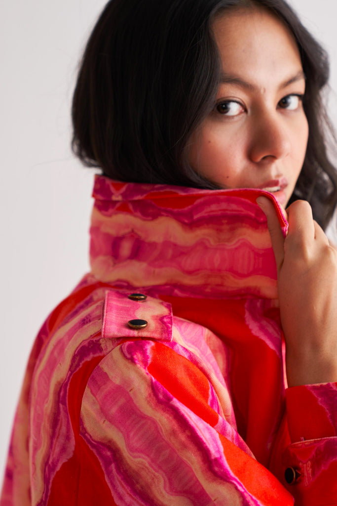 Meet the Fuchsia Flame Cropped Trench—a bold, reimagined twist on an iconic style that’s all about making a statement. In a vibrant red with hints of fuchsia, this jacket brings a burst of energy to any outfit, perfect for those who want to add a punch of color to their look without compromising on style. Crafted with a cropped fit and classic trench detailing, it’s an elevated piece that’s both playful and polished.