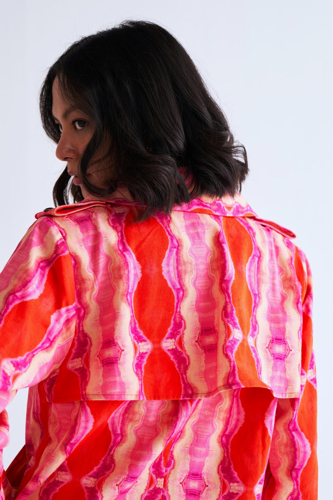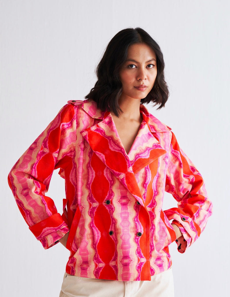 The Fuchsia Flame Cropped Trench is designed for those who love classic silhouettes with a contemporary twist—bringing vibrancy and confidence to your everyday look.